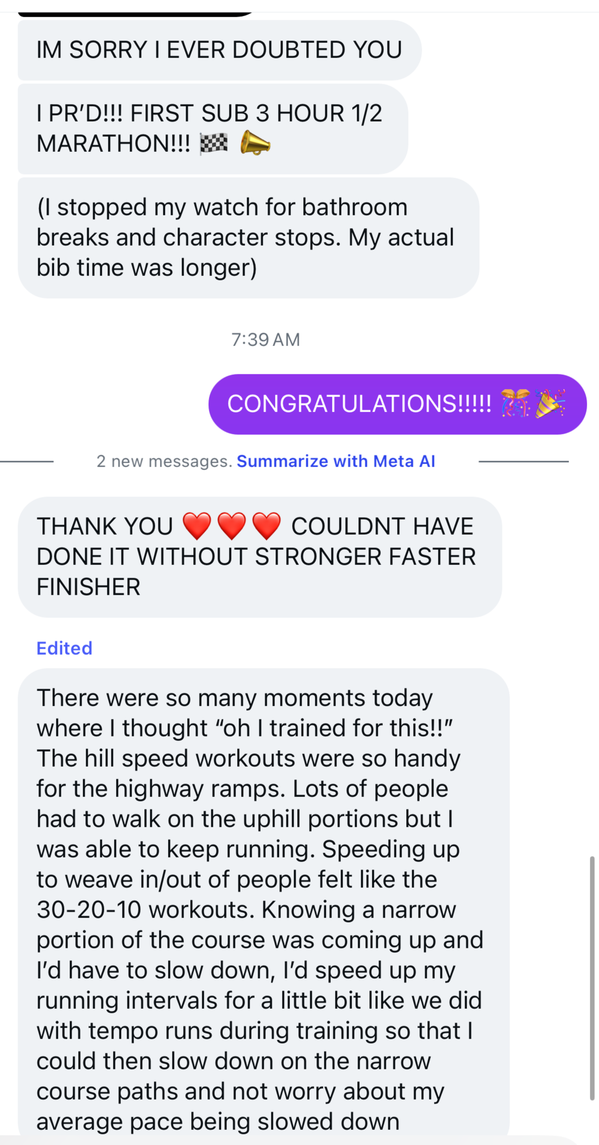 Or they’ve never coached runners whose main goal is simply to finish strong and not fall apart
